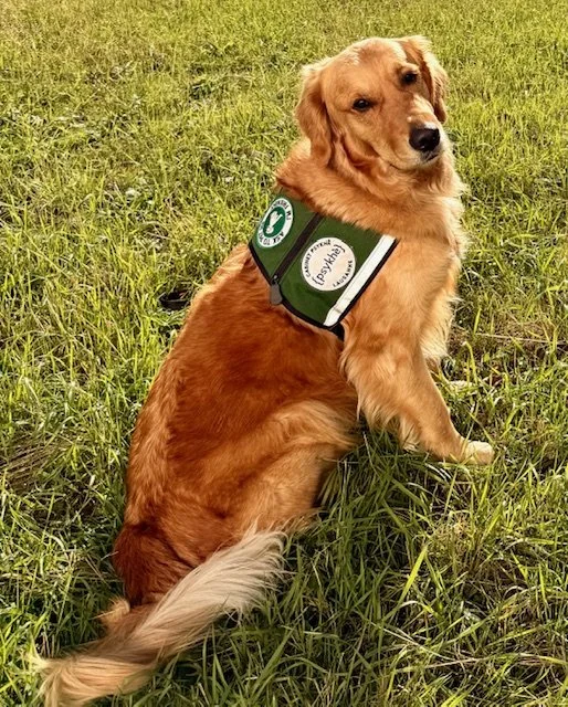 Depuis avril 2025, et après quelques mois d’attente ainsi qu’une formation auprès de la Fondation Le Copain ( www.lecopain.net), elle est accompagnée de son chien de thérapie, Qiviut.
